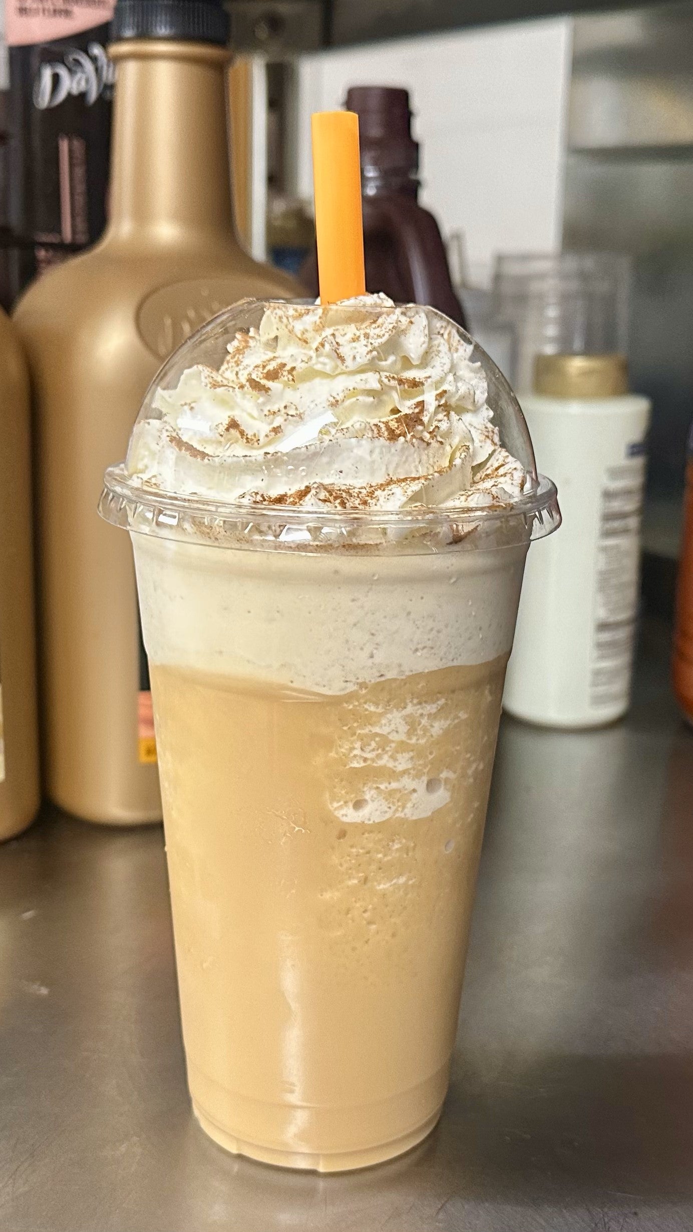 Pumpkin Pie Frappe- vanilla cream, pumpkin, pumpkin pie spice, maple syrup